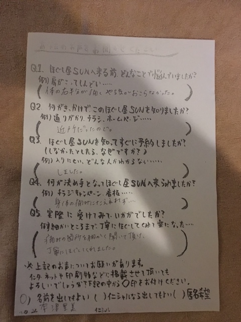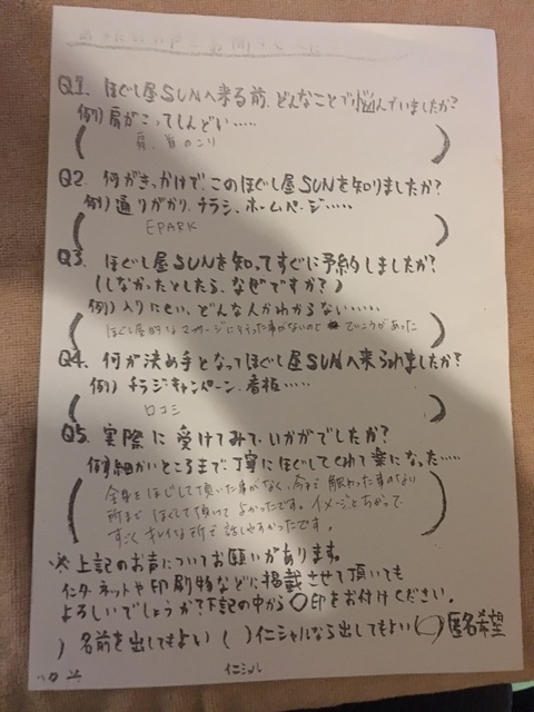 アメブロ Facebook Twitter アプリ登録 LINE@長尾駅前店 お客様の声 お客様の声1 Y様 最近疲れがたまっていたのでサイトで知って来てみようと思いました。ゆっくりできて、良かったです。 ▲TOP お客様の声2 匿名様 近いから、えらびました。とっても気持ちよくて、リフレッシュできました。 ▲TOP お客様の声3 T様 いつもとても気持ちよくて、体がすごく楽になります。ありがとうございます。 ▲TOP お客様の声4 N様 ここは近くて、自分に合っているマッサージだと思います。身体中の疲れがスーッと軽くなりました。近いのでもっと利用したいのですがなかなかタイミングがないので、いける時にまたしてもらいたいです。 ▲TOP